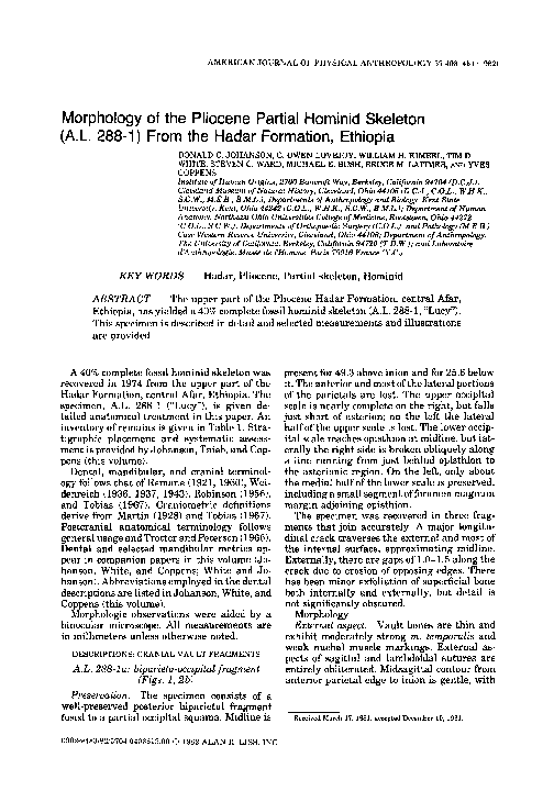 (PDF) Morphology of the Pliocene partial hominid skeleton (A.L. 2881