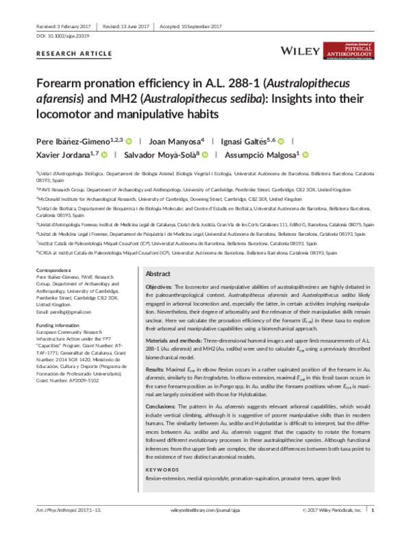 (PDF) Forearm pronation efficiency in A.L. 2881 (Australopithecus