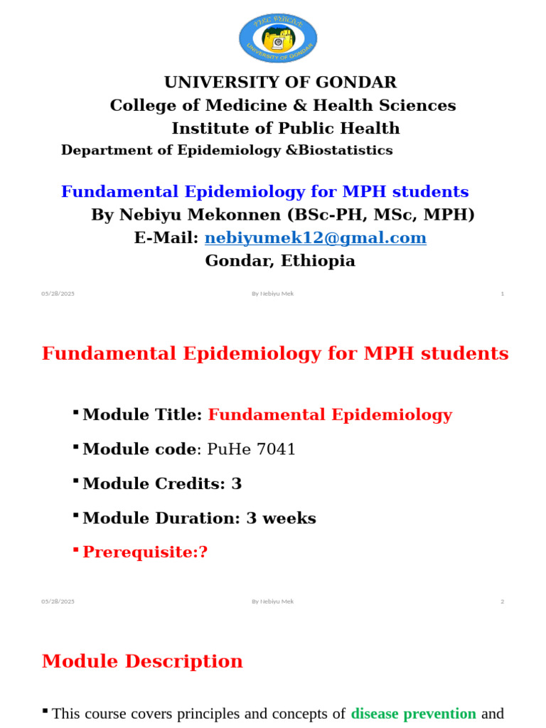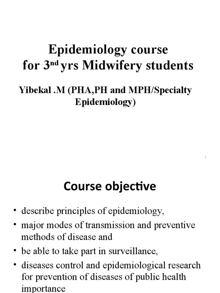 Epidemiology Course For 3 Yrs Midwifery Students Yibekal .M (PHA, PH