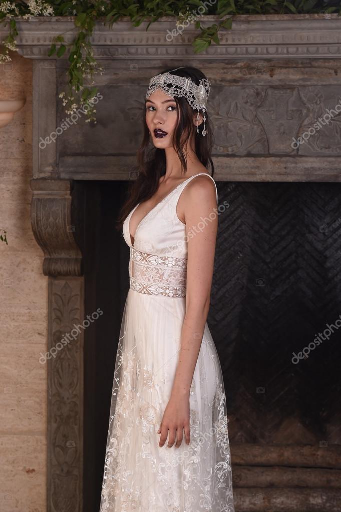 A Model Posing During The Claire Pettibone Four Seasons Catalog Photo