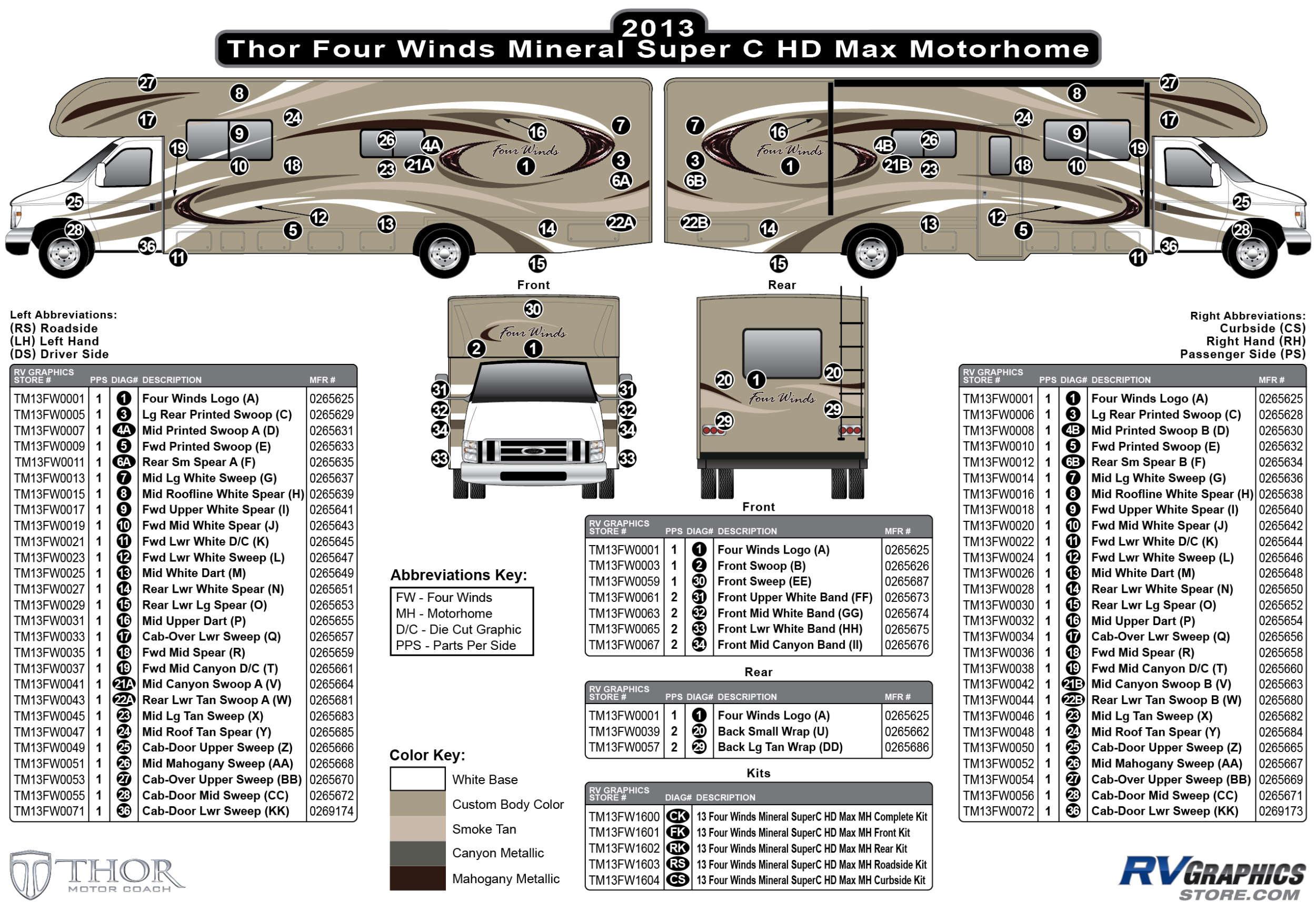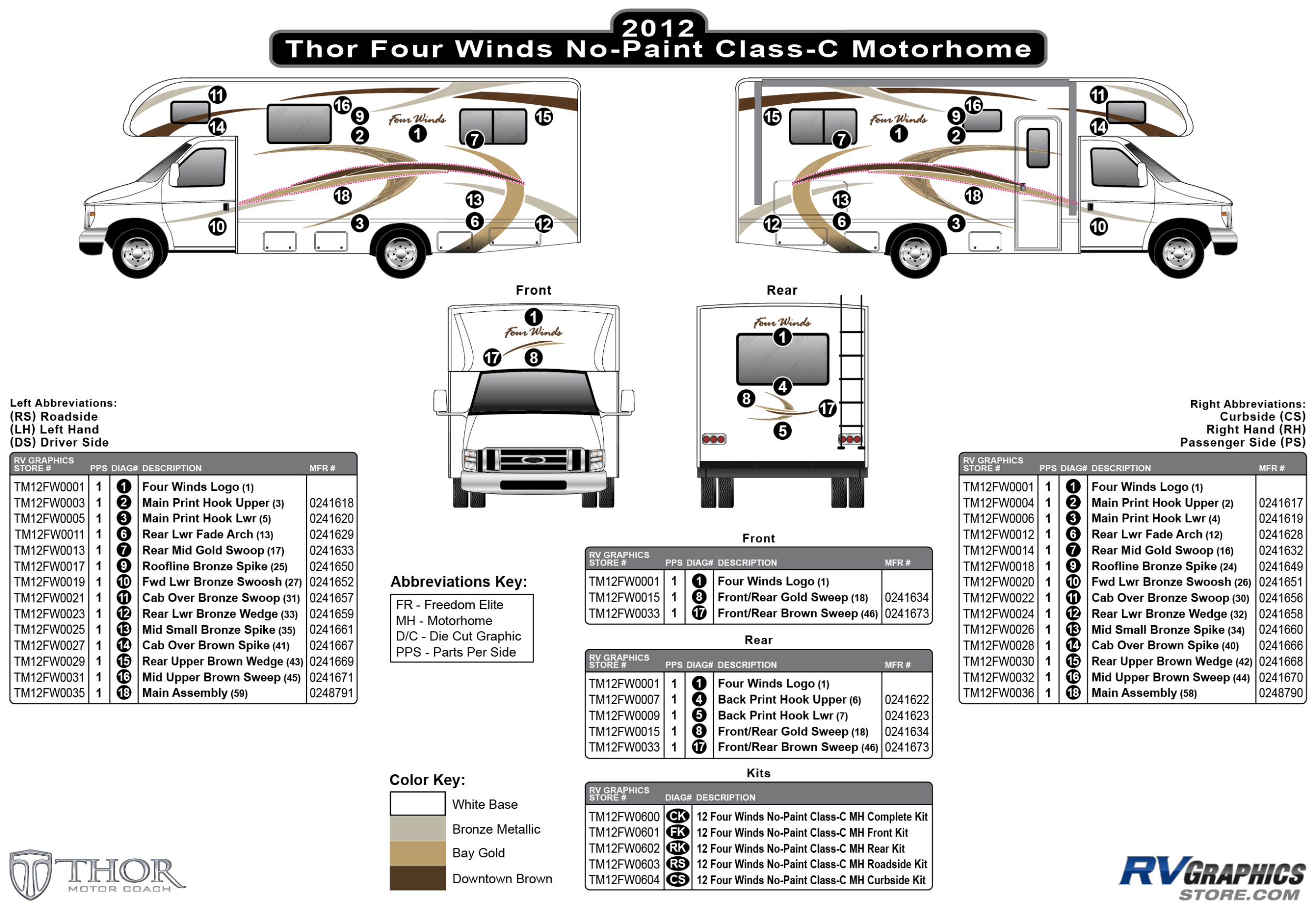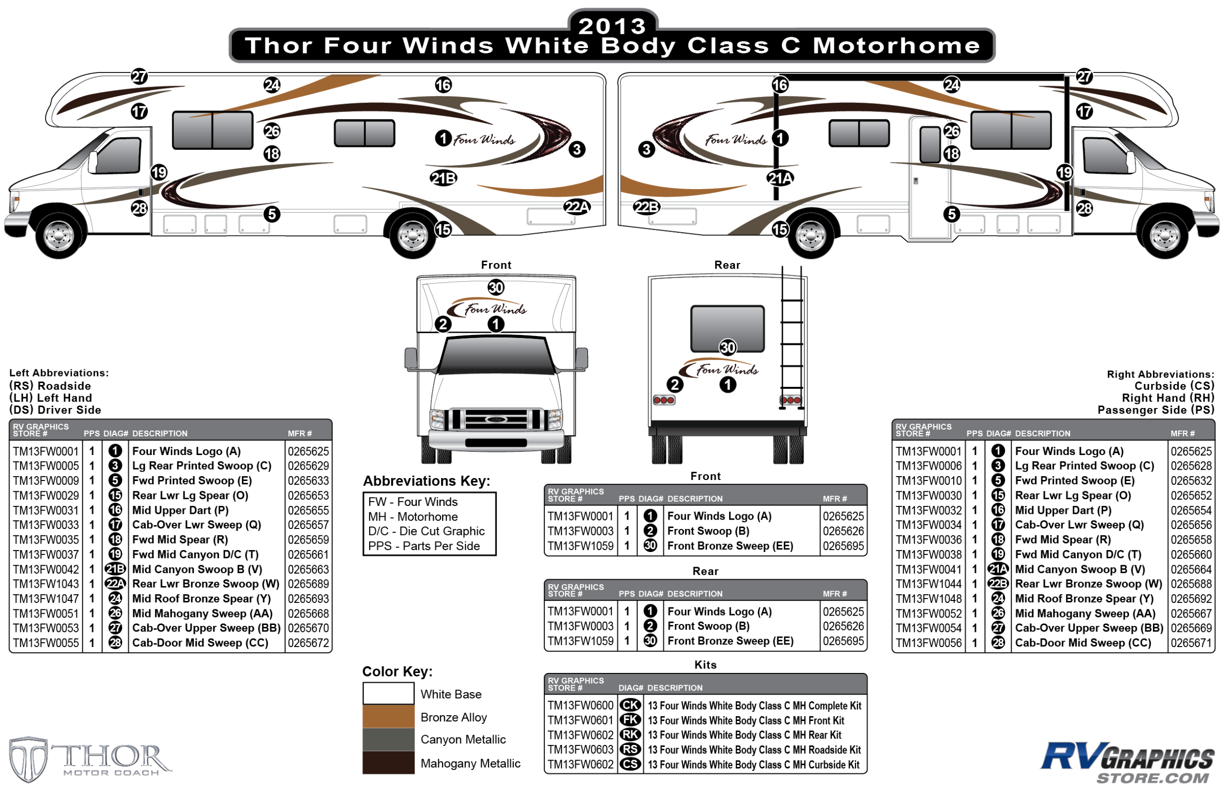 14 Piece 2013 Four Winds Motorhome Whitebody Curbside Graphics Kit
