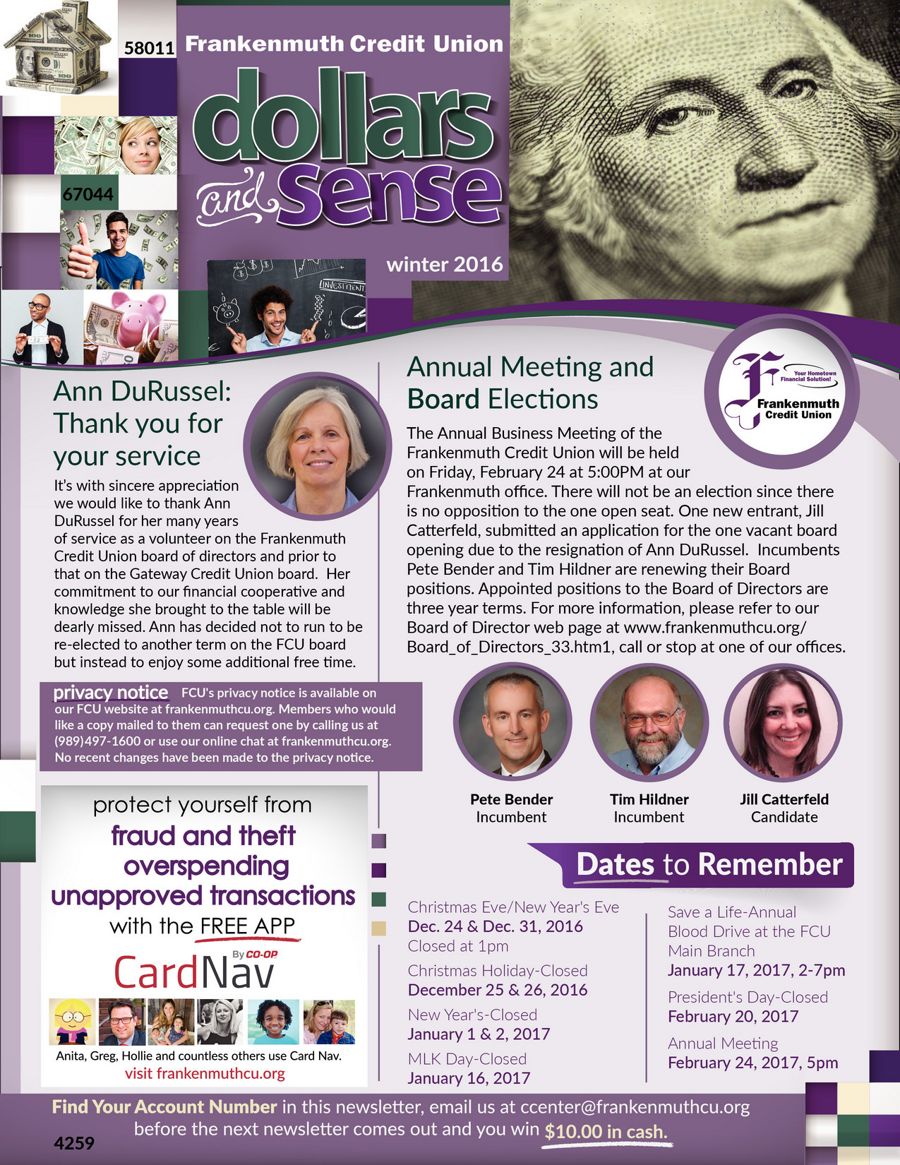 Frankenmuth Credit Union Dollars and Sense Winter 20162017 by