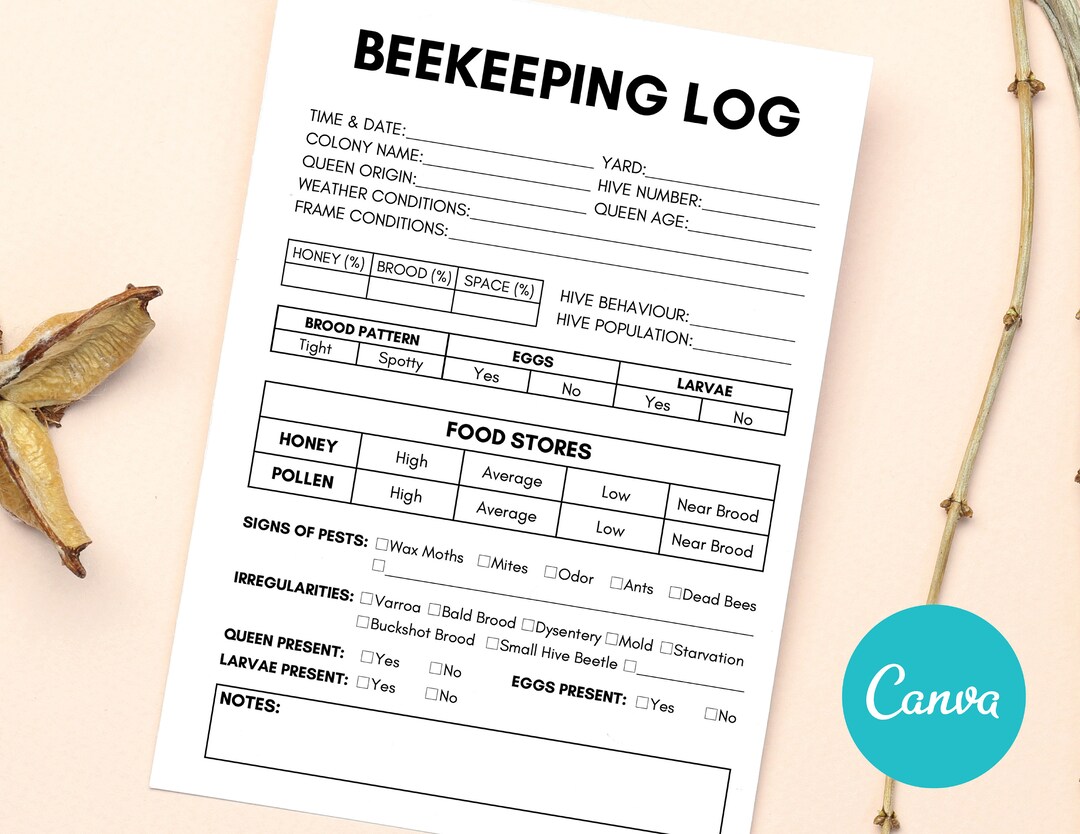 Bee Keeping Logbook, Template, Beekeeping Inspection Checklist Etsy