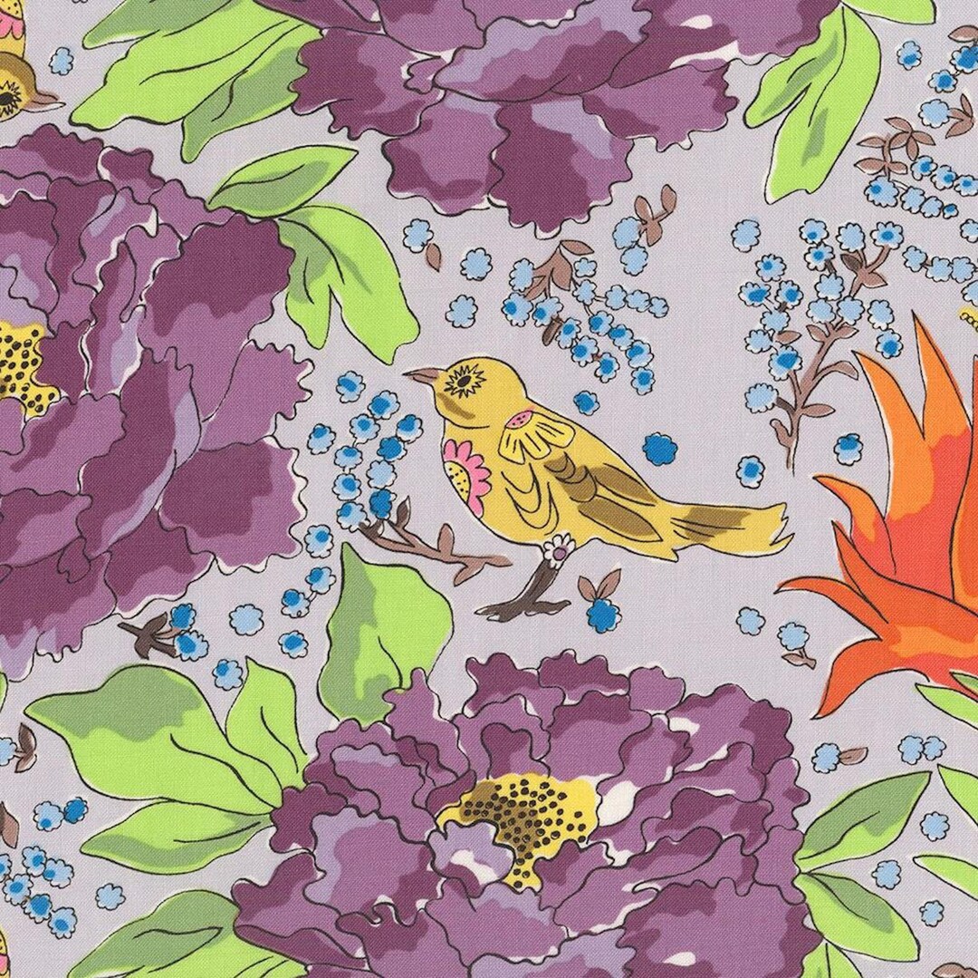 Free Spirit Fabrics Laura Heine Bird of Paradise Gray PWL.HD16.GRAY Etsy