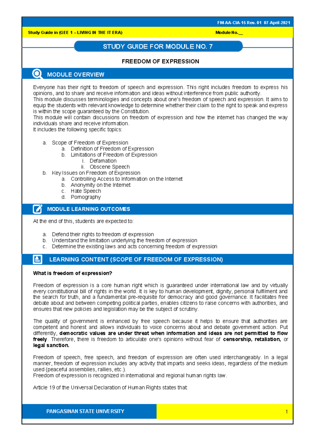 ModuleNO7 FREEDOM LEARNING CONTENT (SCOPE OF FREEDOM OF