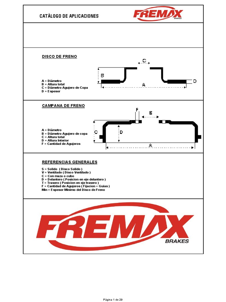 FREMAX Catálogo de Aplicaciones Discos y Campanas de freno