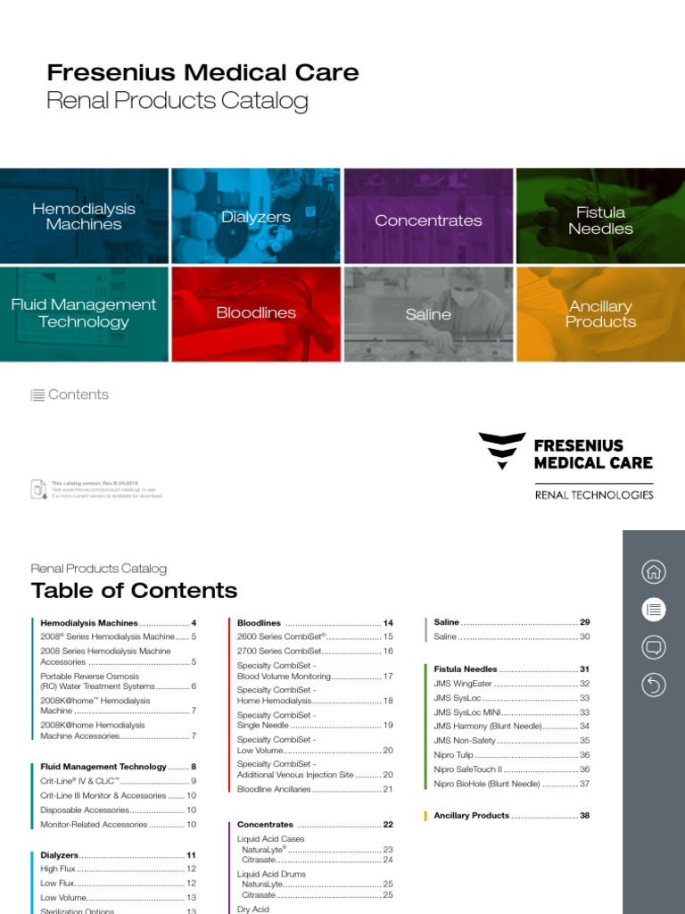 Fresenius Medical Care Renal Products Catalog PDF Hemodialysis
