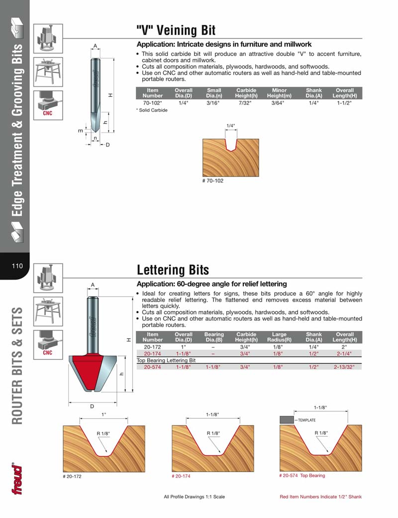 Freud 20172 1" Diameter X 3/4" 60Degree Lettering Bit (1/4" Shank)