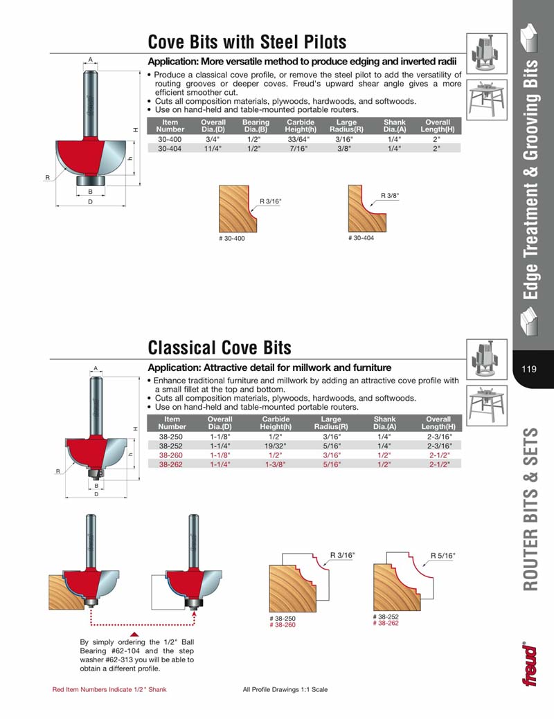 Freud 38262 11/4" Diameter Classical Cove Router Bit (1/2" Shank)