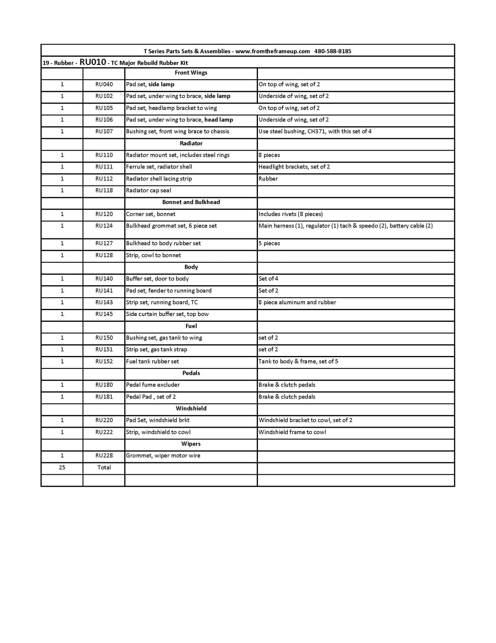 RU010TC Major Body Rubber Kit, see PDF for included items — From The