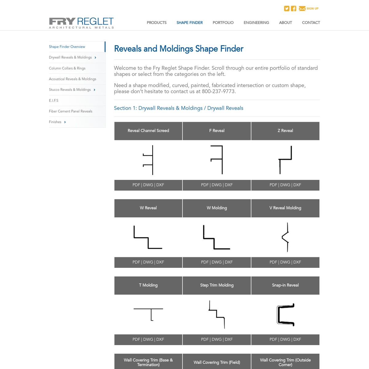 Fry Reglet Shape Finder Portfolio of standard shapes and categories