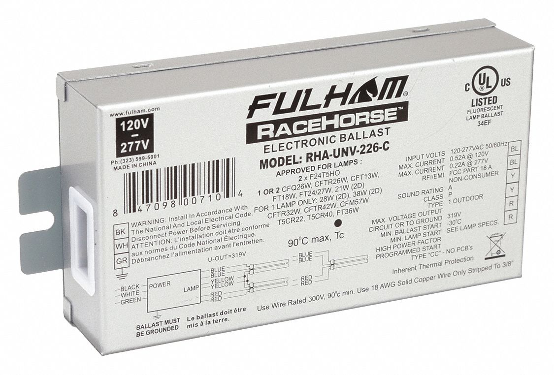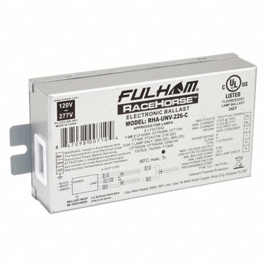 FULHAM, 120 to 277V AC, 1/2 Lamps Supported, Fluorescent Ballast