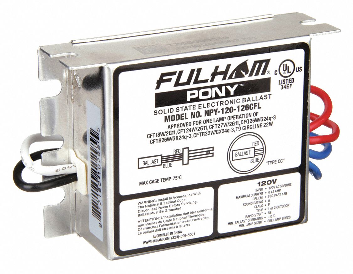 FULHAM, 120 to 277V AC, 1/2 Lamps Supported, CFL Ballast 35JE74RHA