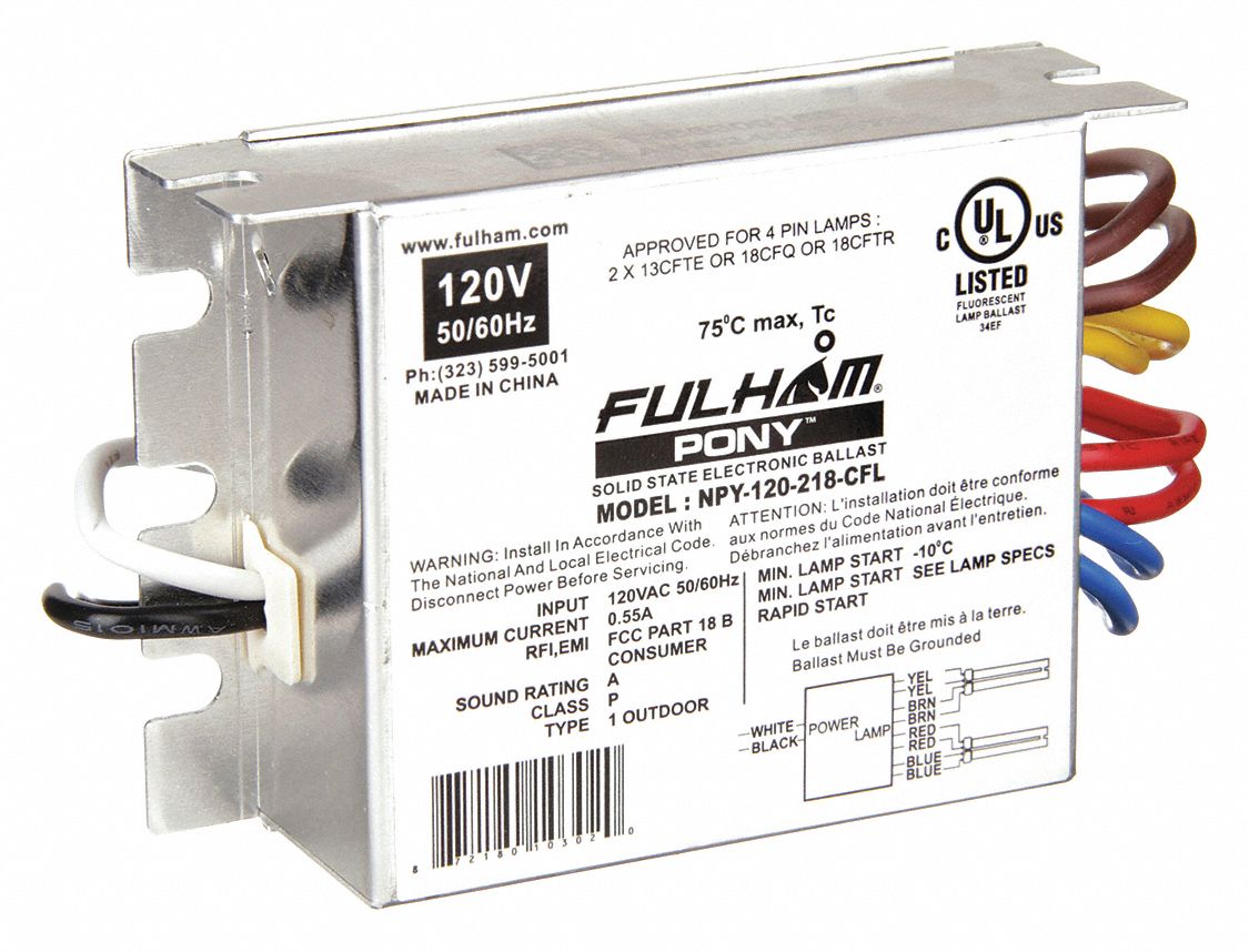 FULHAM, 120/230V AC, 2 Lamps Supported, CFL Ballast 35JE76NPY120