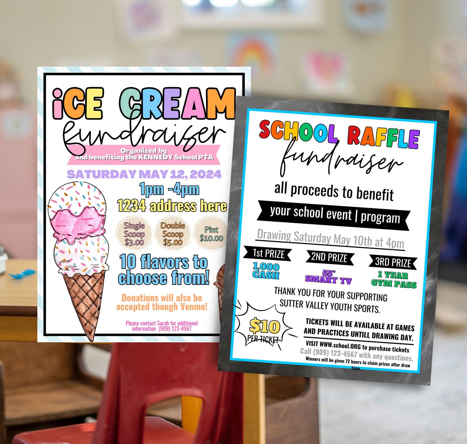 Editable Raffle Fundraiser Flyer, School Pto Pta Church Ticket Sales