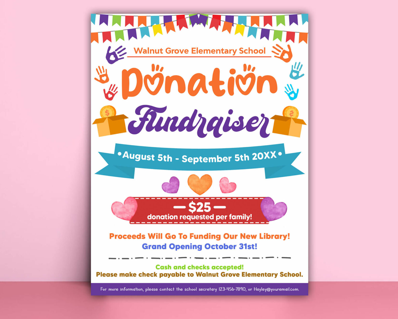 Editable Donation Fundraiser Flyer, PTA PTO School Church Fundraiser