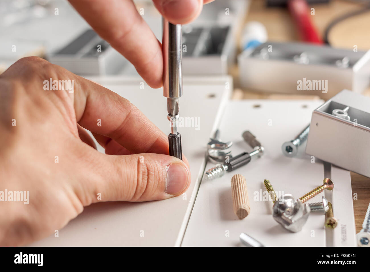 Assembling IKEA furniture parts with instructions Stock Photo Alamy