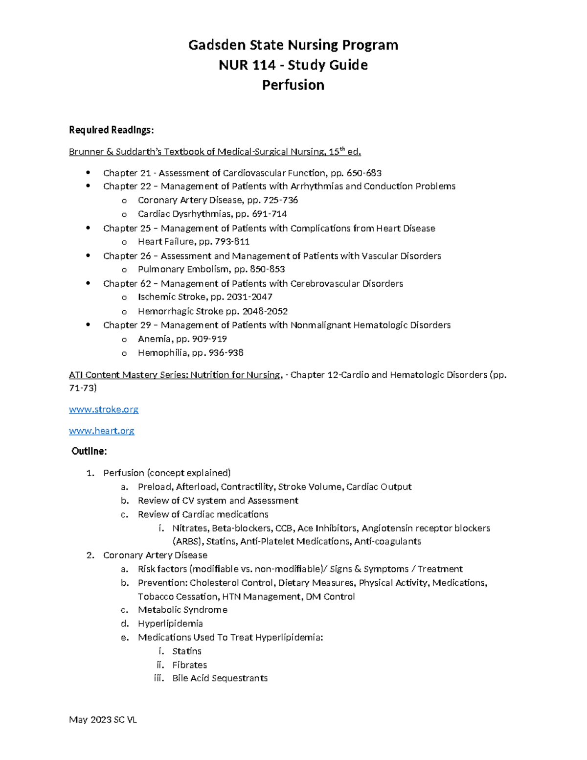114 Study Guide, Perfusion, May 2023, VL SC Gadsden State Nursing