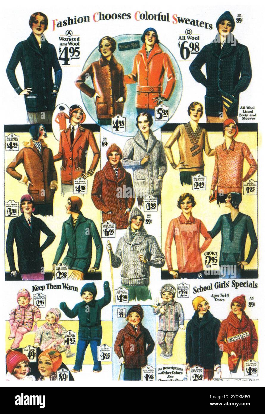 1930 Girls' sweaters sheet catalog ad fashion chooses colorful