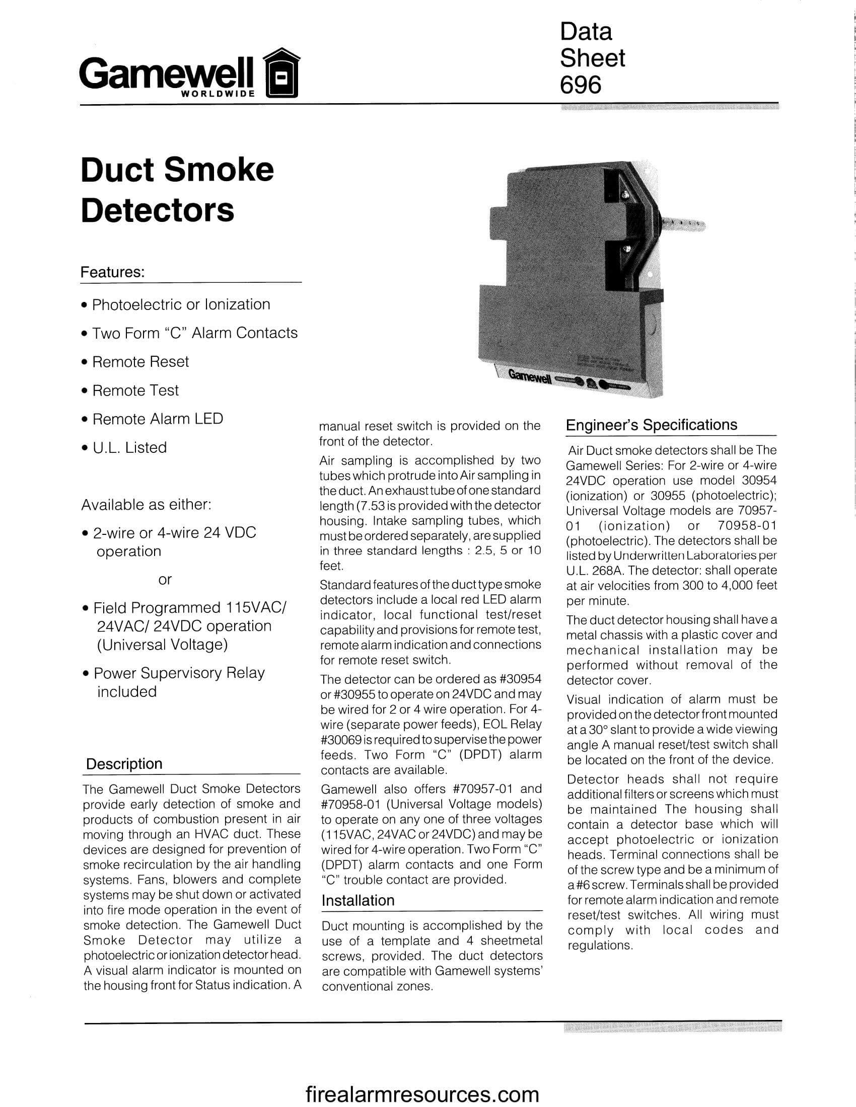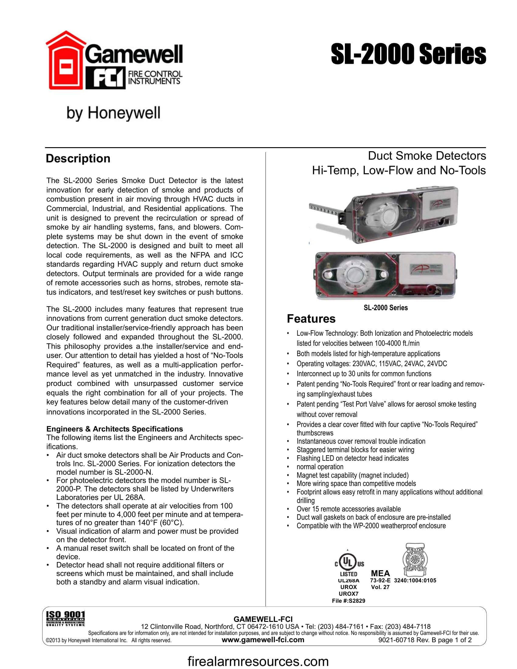 GamewellFCI SL2000 Series Duct Smoke Detectors Download fire alarm