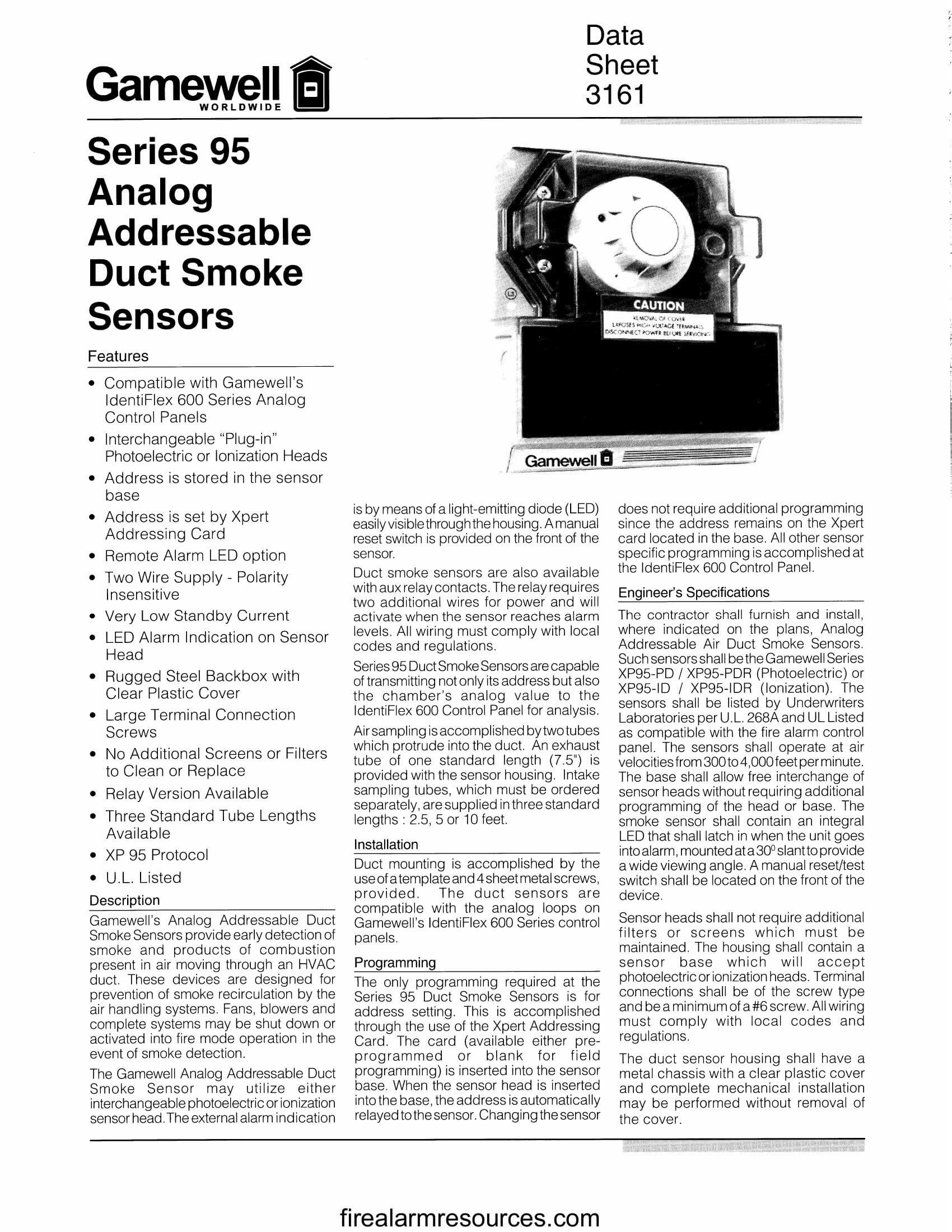 Gamewell XP95PD Photoelectric Duct Smoke Detector