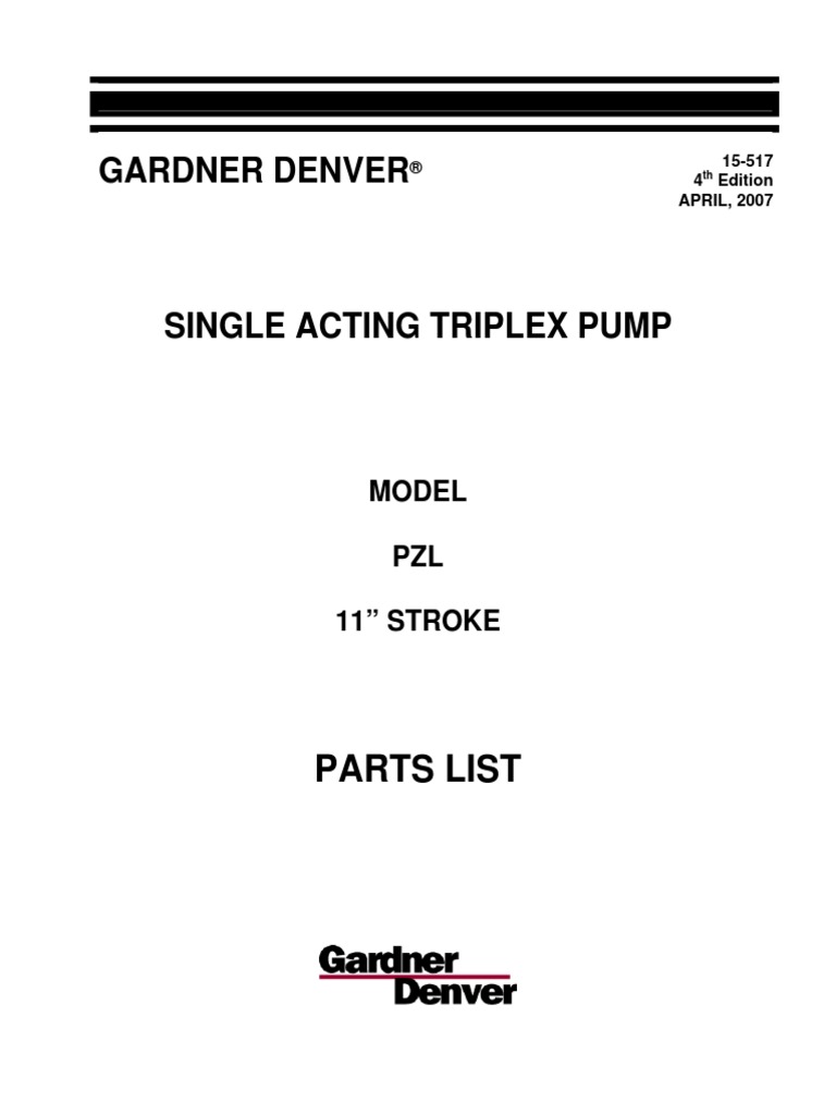 Gardner Denver PZ11 Pump Parts List PDF Valve Machines
