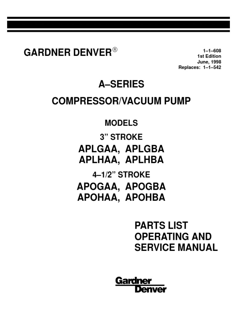Gardner Denver APO APL Parts List PDF Motor Oil Belt (Mechanical)