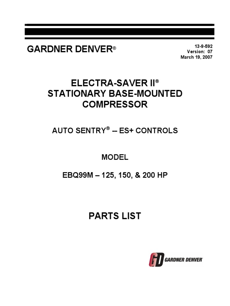 GardnerDenver Parts List, Instruction Manual for ES, ET Compressor eBay