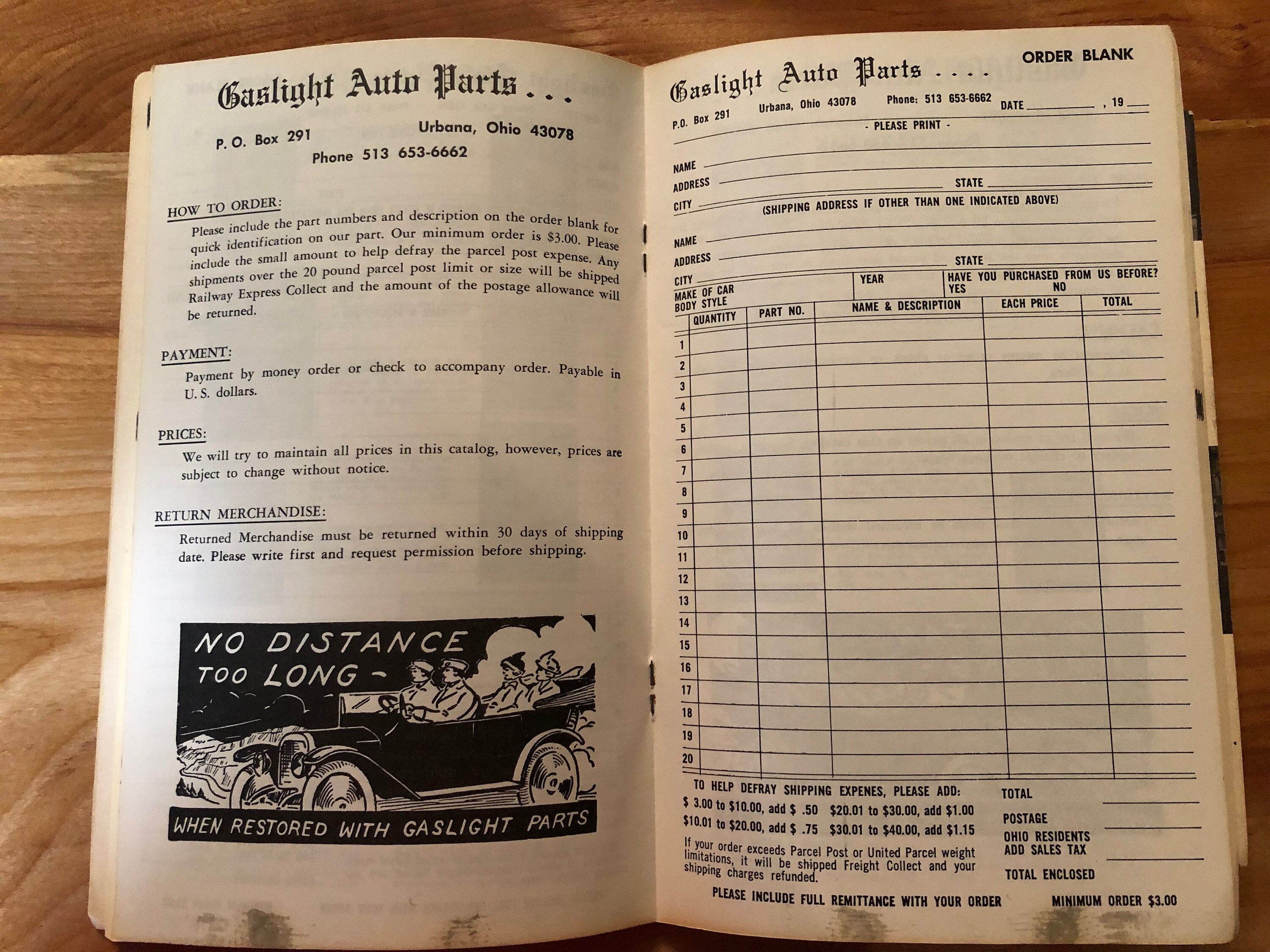 Gaslight Auto Parts Catalog Copyright 1972 Antique Auto Parts