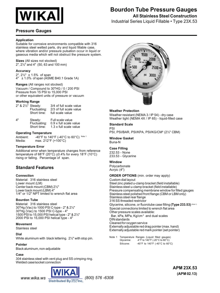 Wika Gauge Catalog Sulfur Pressure Measurement