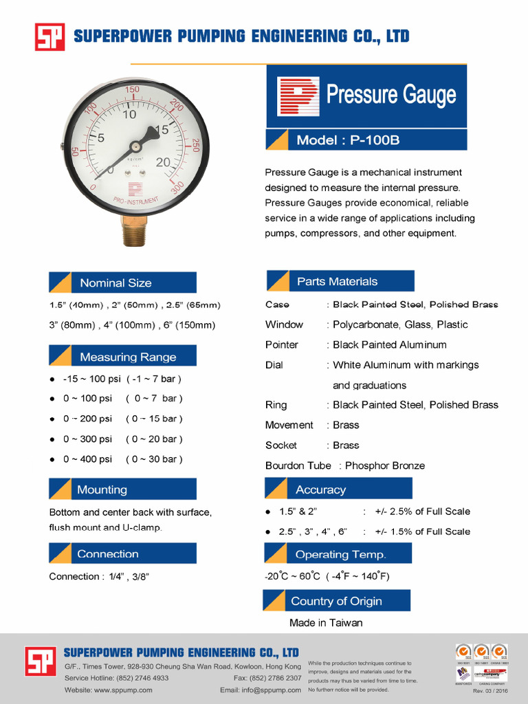 SP Pro Pressure Gauge Catalogue Rev 032016 PDF