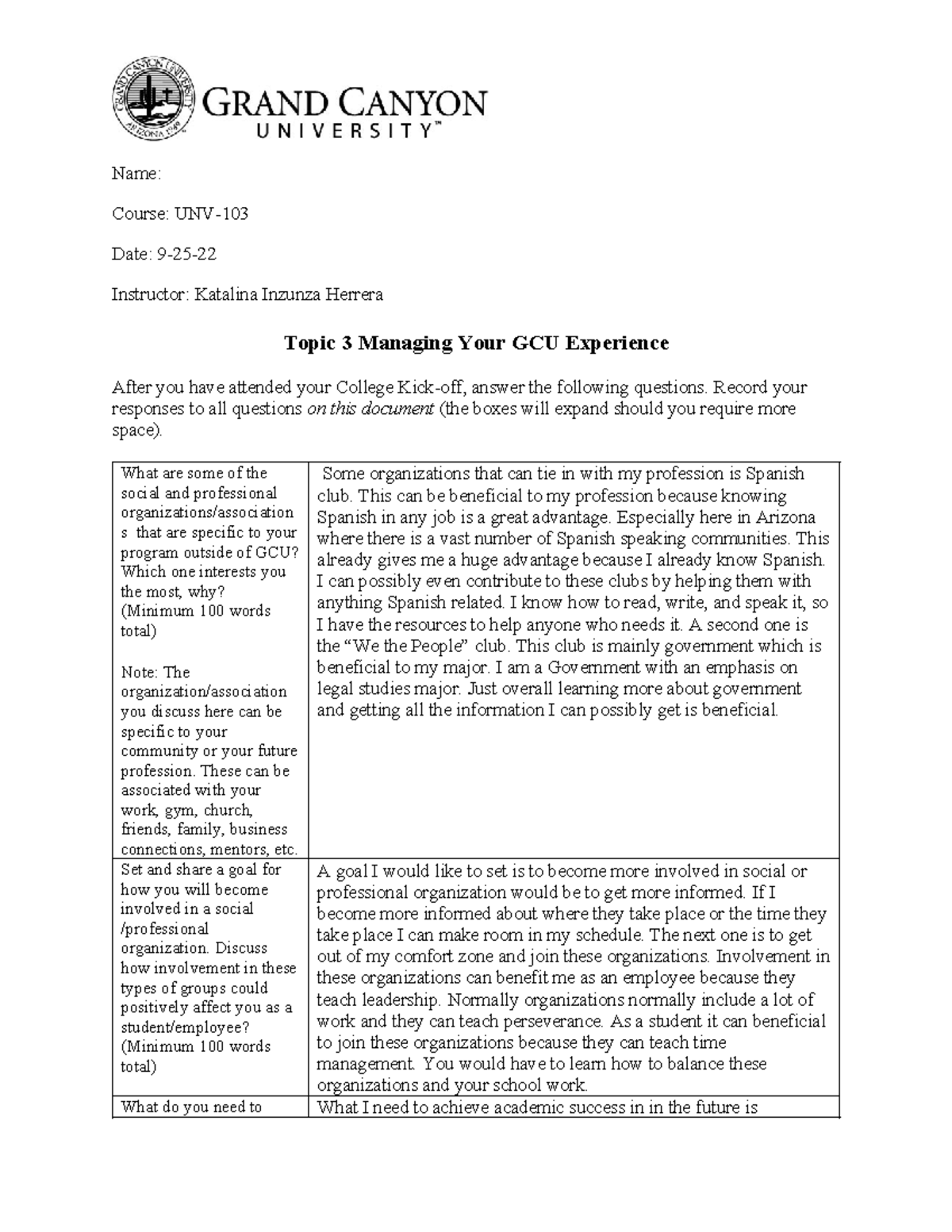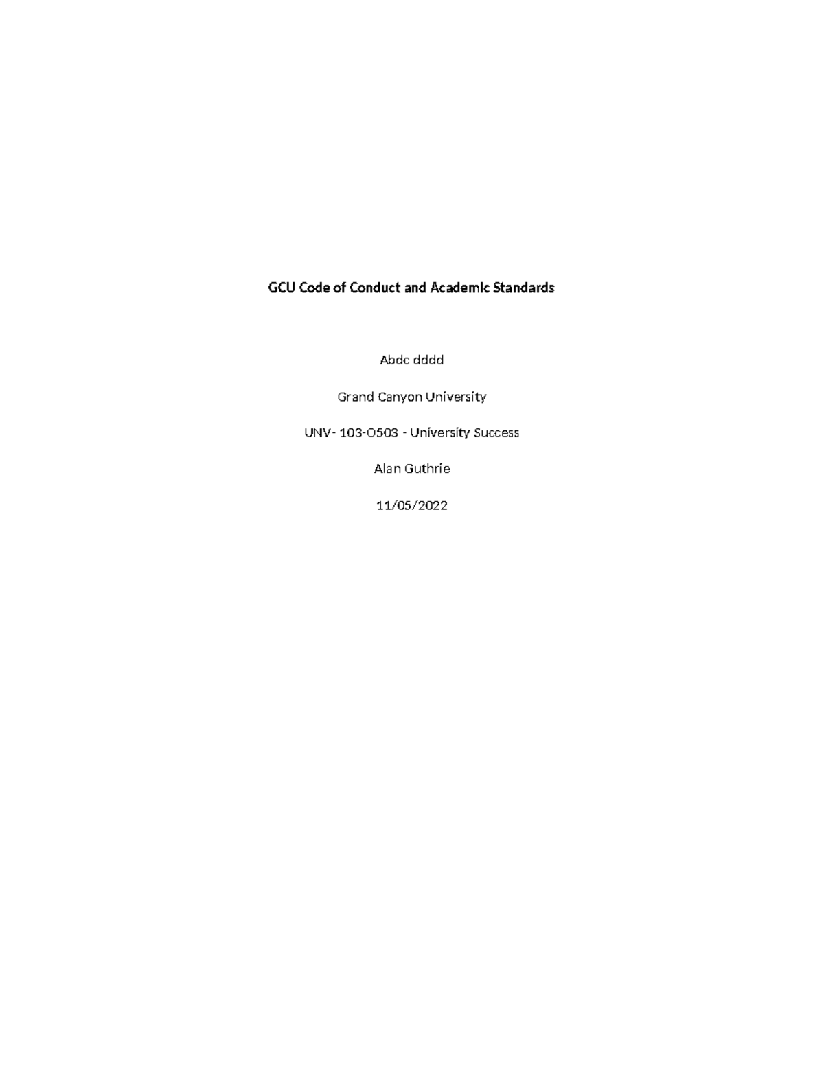 UNV103O503 GCU Code of Conduct & Academic Standards Overview Studocu
