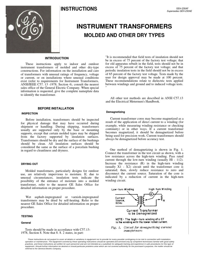 19SHT202Instrument Transformer Div of GECurrent Transformers
