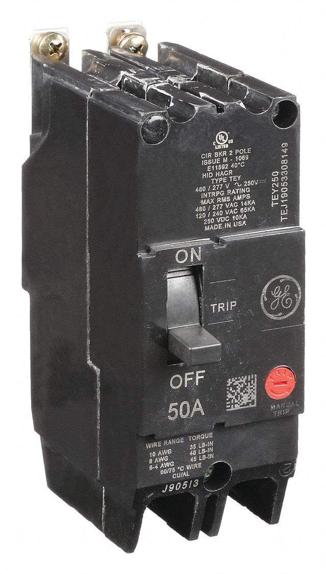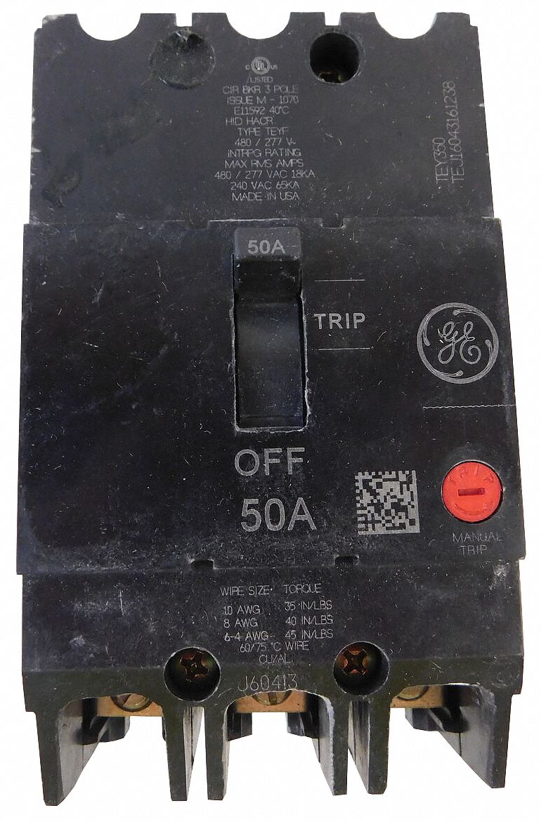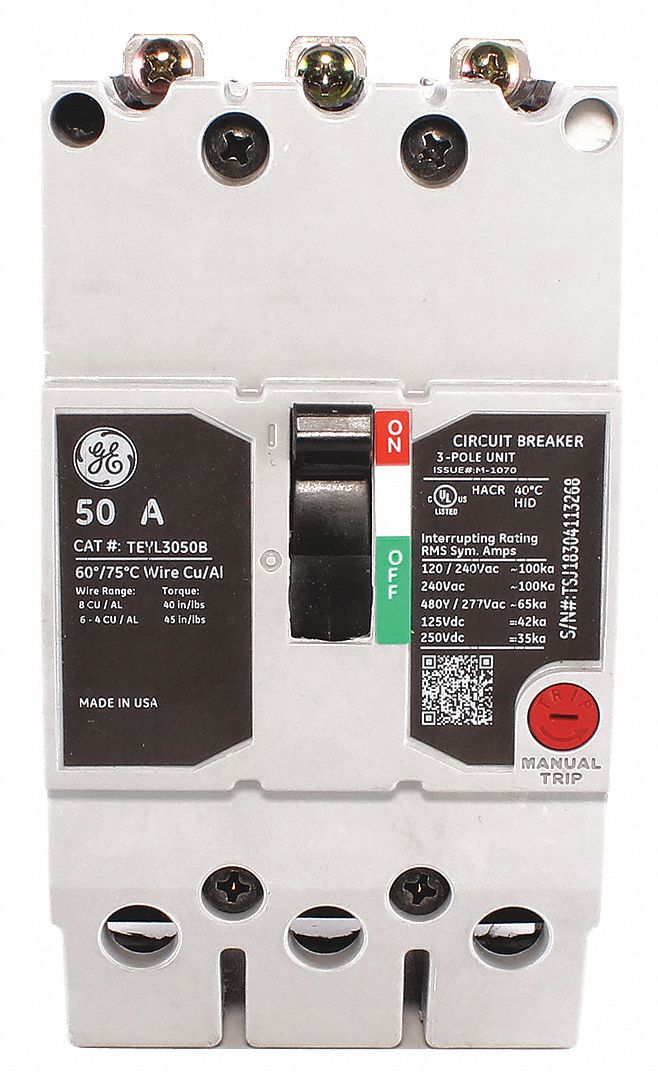 GE, 50 A Amps, 65kA at 277/480V AC, Molded Case Circuit Breaker