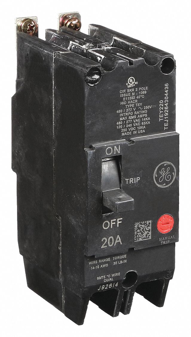 GE, 20 A Amps, 14kA at 120/240/277V AC, Molded Case Circuit Breaker