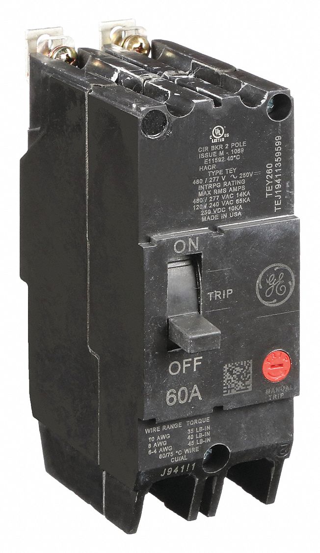 GE, 60 A Amps, 18kA at 120/240/277/480V AC, Molded Case Circuit Breaker