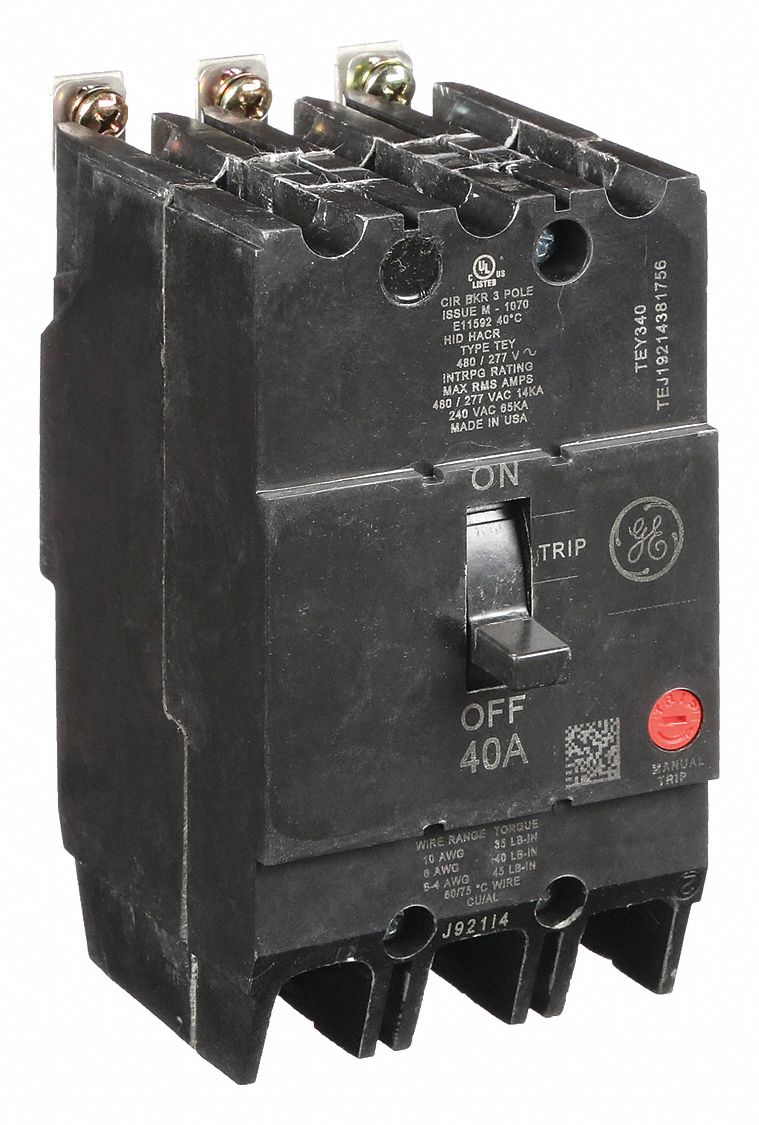 GE, 40 A Amps, 18kA at 277/480V AC, Molded Case Circuit Breaker