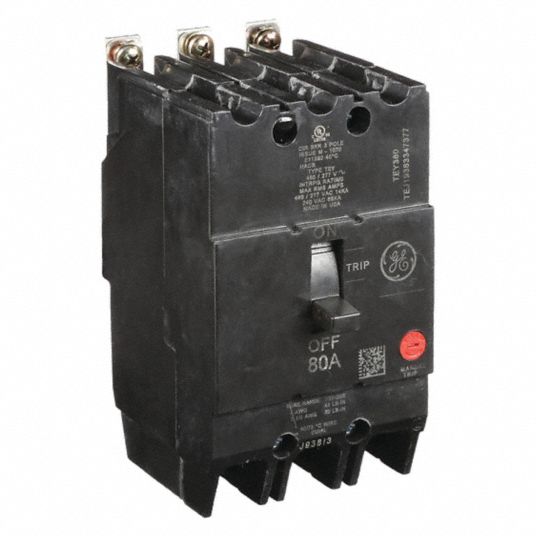 GE, 80 A Amps, 14kA at 277/480V AC, Molded Case Circuit Breaker 3HXF9