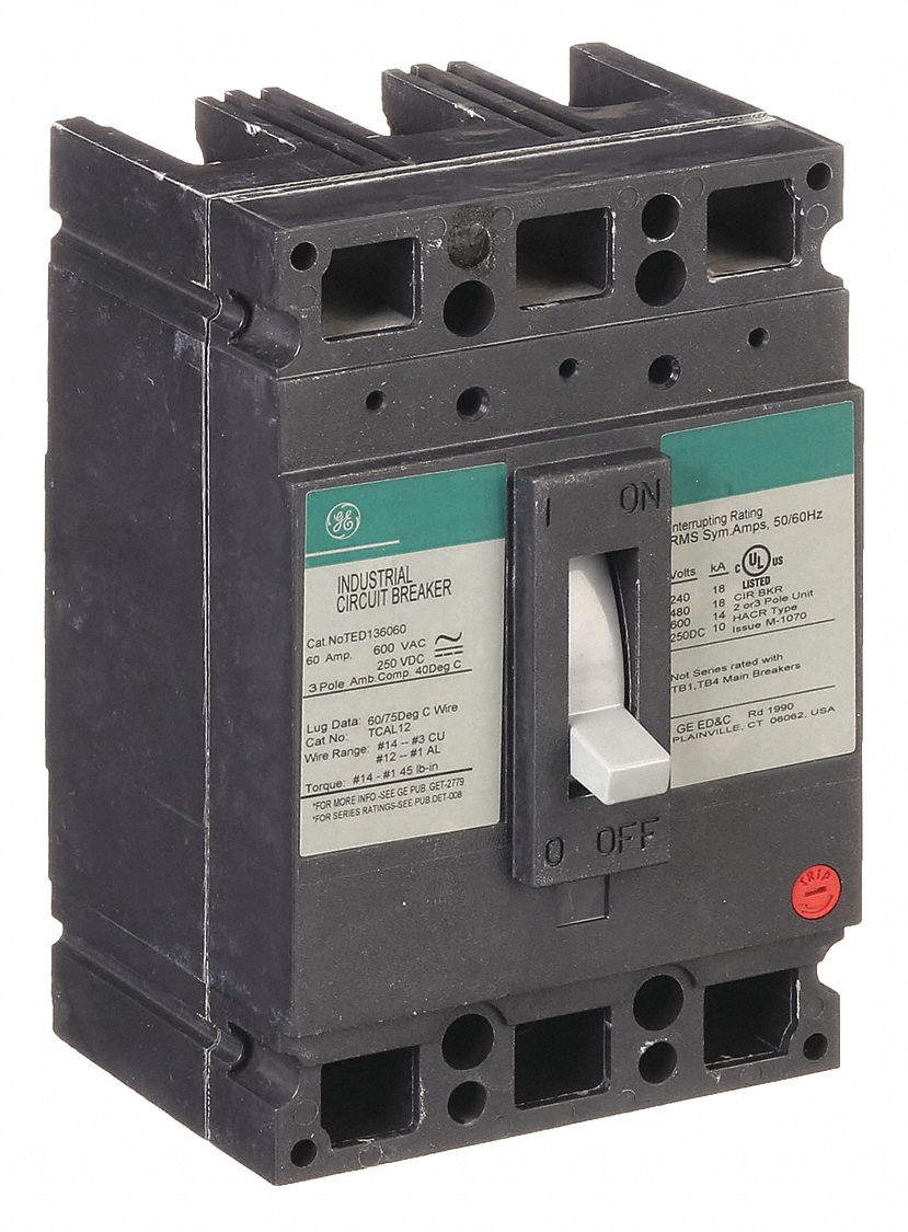 GE, 60 A Amps, 18kA at 277/480V AC, Molded Case Circuit Breaker