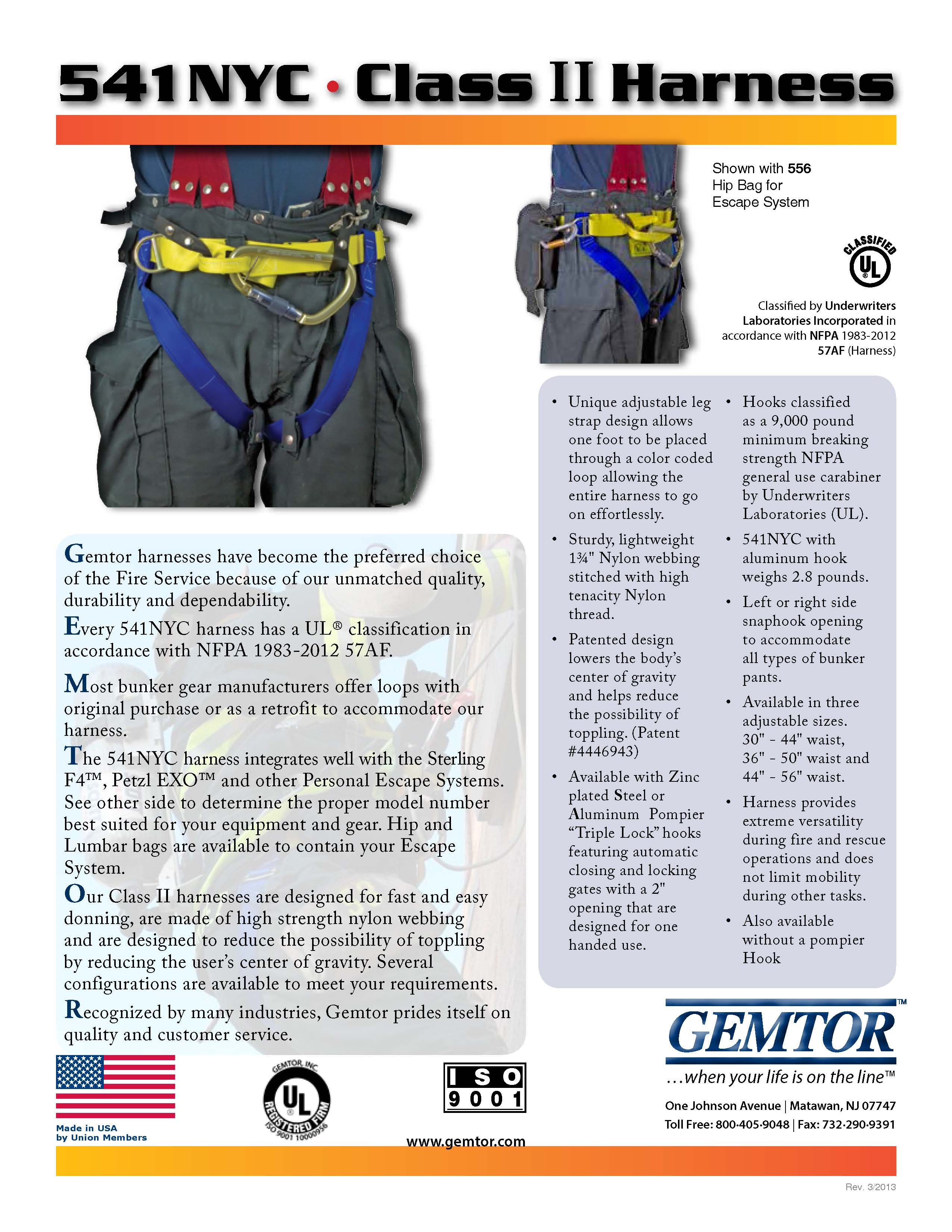 Gemtor 541NYCL0A Class II Rescue Harness 30 Inch to 44 Inch 19TJ13