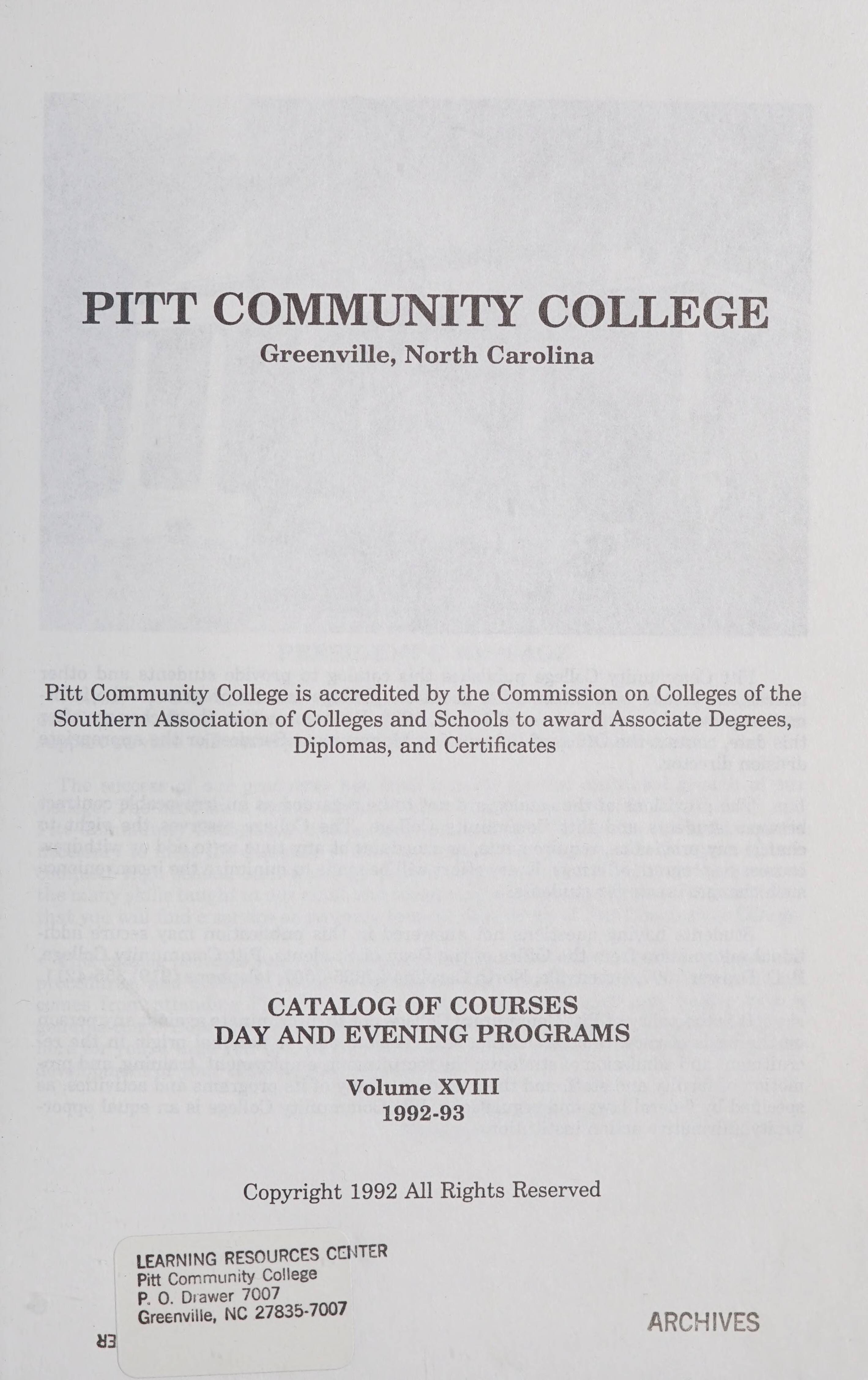 ![Pitt Community College General Catalog [19921993]](https://lib.digitalnc.org/record/240819/files/pittcommunitycol18pitt_0003.jpg)