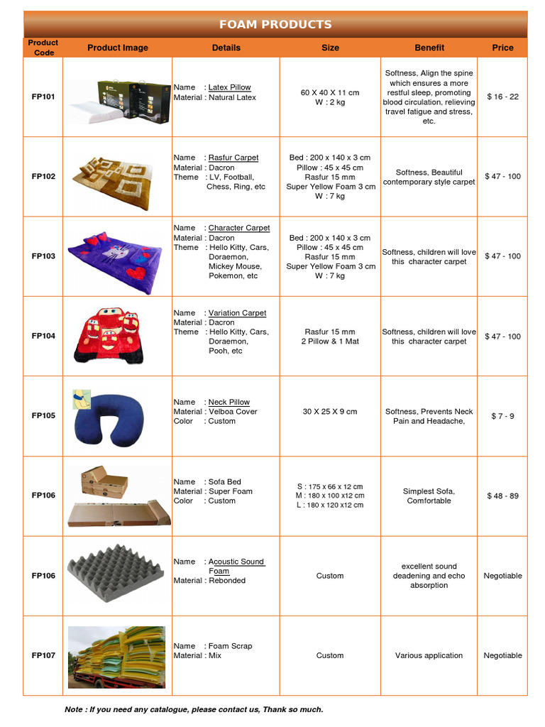 Foam Product Catalogue PDF Pillow Building Engineering
