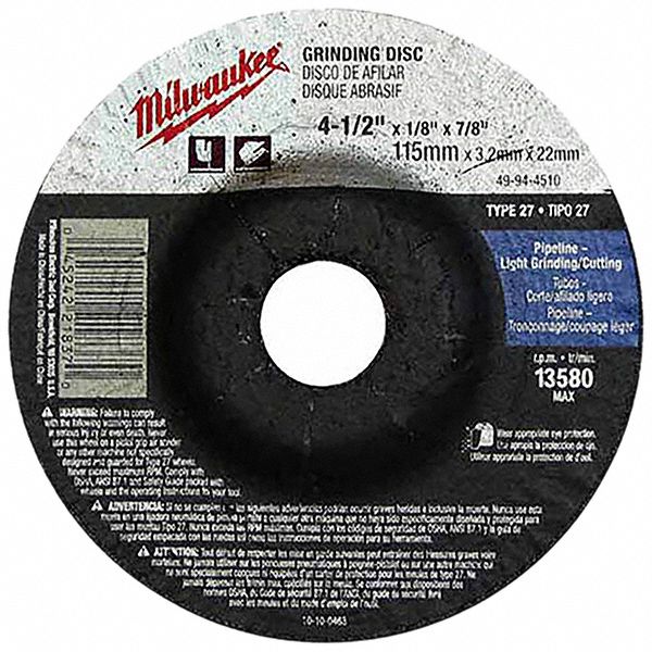 Milwaukee Tool 41/2" x 1/4" x 5/811" Grinding Wheel (Type 27