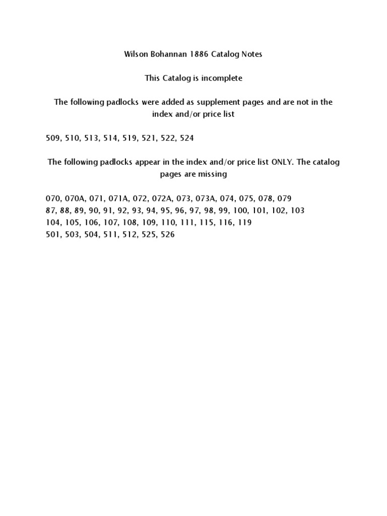 Wilson Bohannan General Line Lock Catalog 1886 PDF Lock (Security