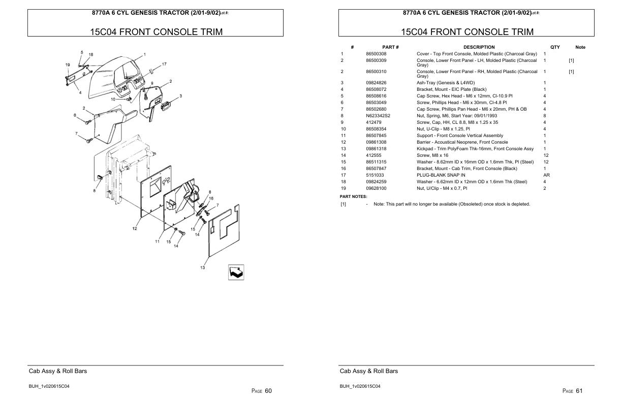 Versatile Tractor 8870 6 CYL Genesis Parts Catalog 19932001