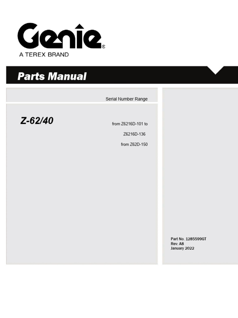 Genie Z60/34 PARTS MANUAL BOOK CATALOG BOOM LIFT PLATFORM LIST GUIDE
