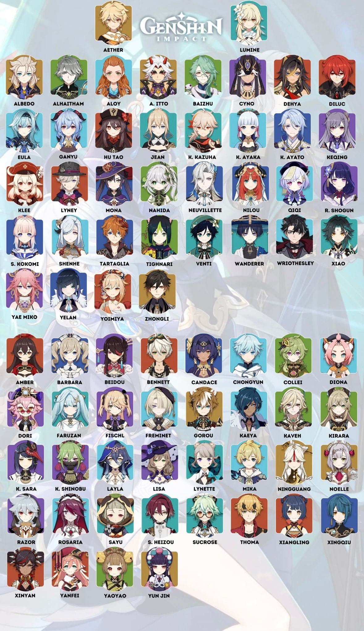 Genshin Playable Characters Alphabetical Order Design Talk