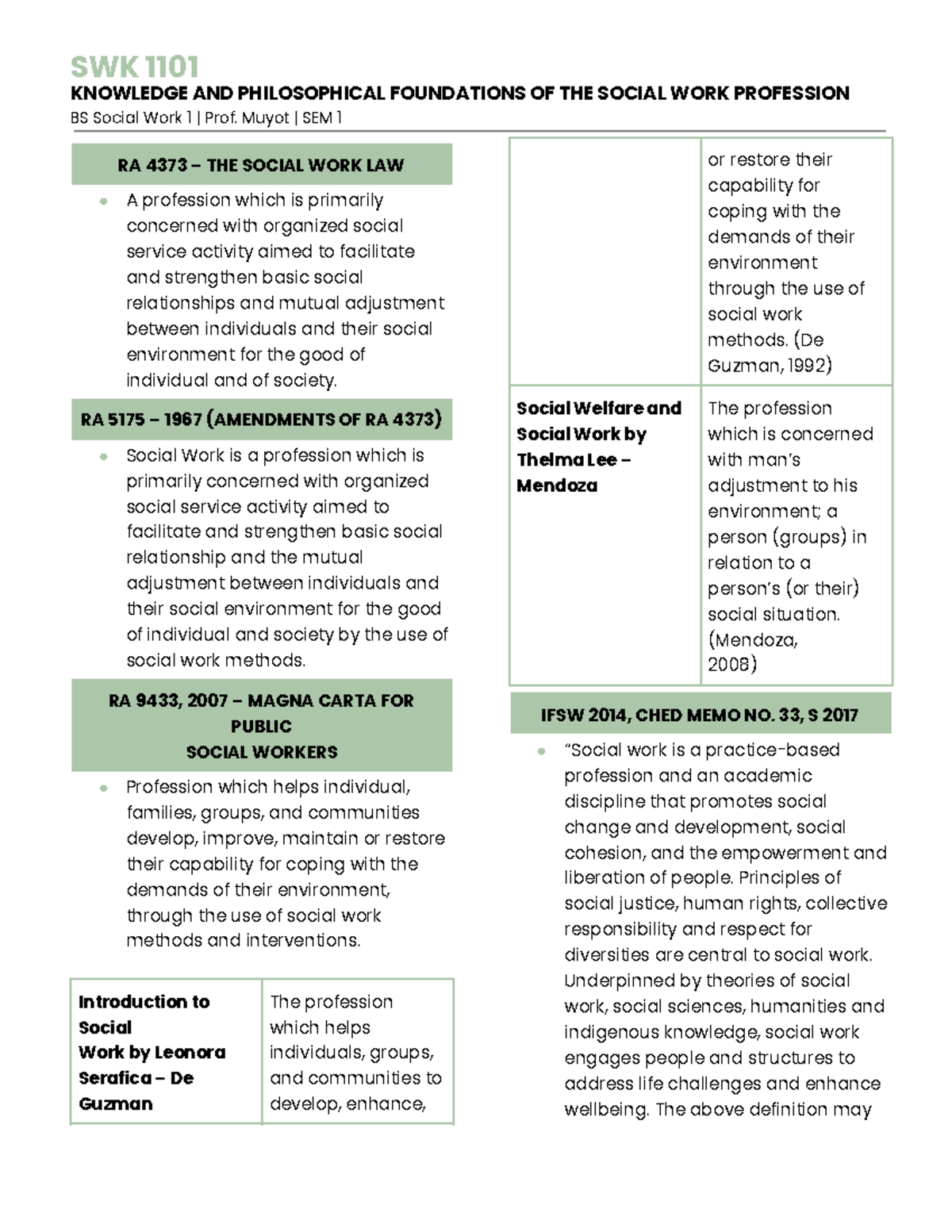 (SWK) Introduction to Social Work SWK 1101 KNOWLEDGE AND