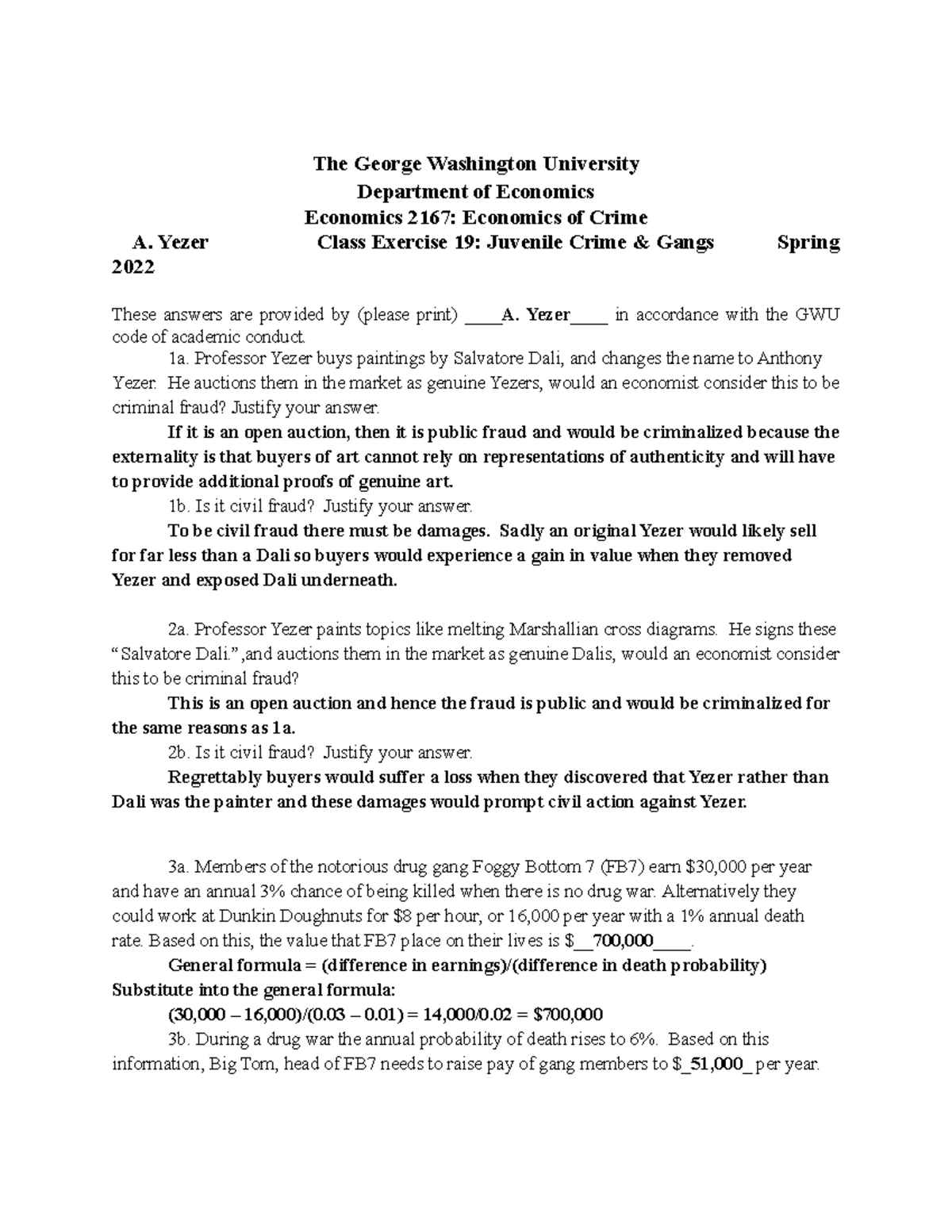 Econ2167Spring 2022 Class Exercise 19 Answers March 22 The