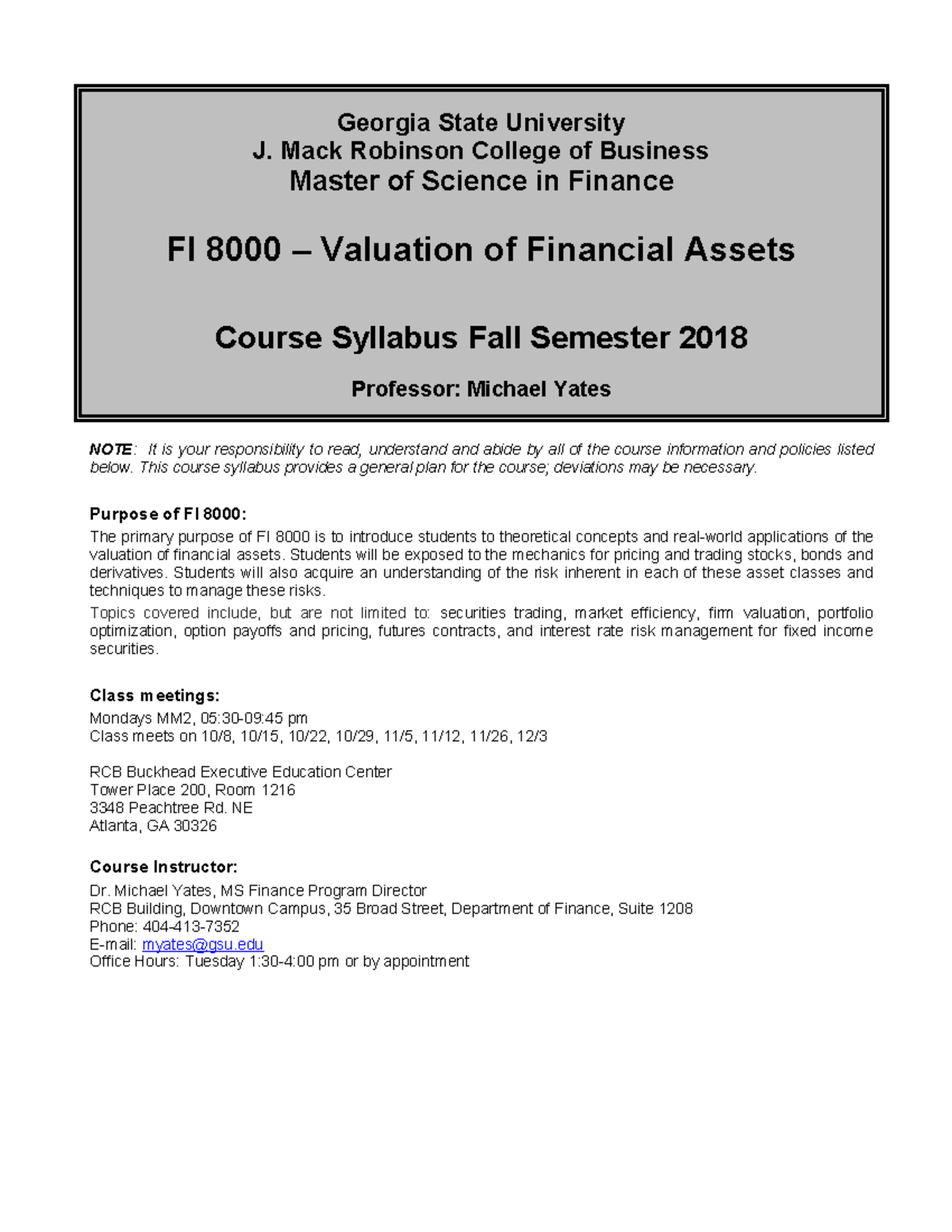 FI 8000 Syllabus Fall 2018 State University J. Mack Robinson